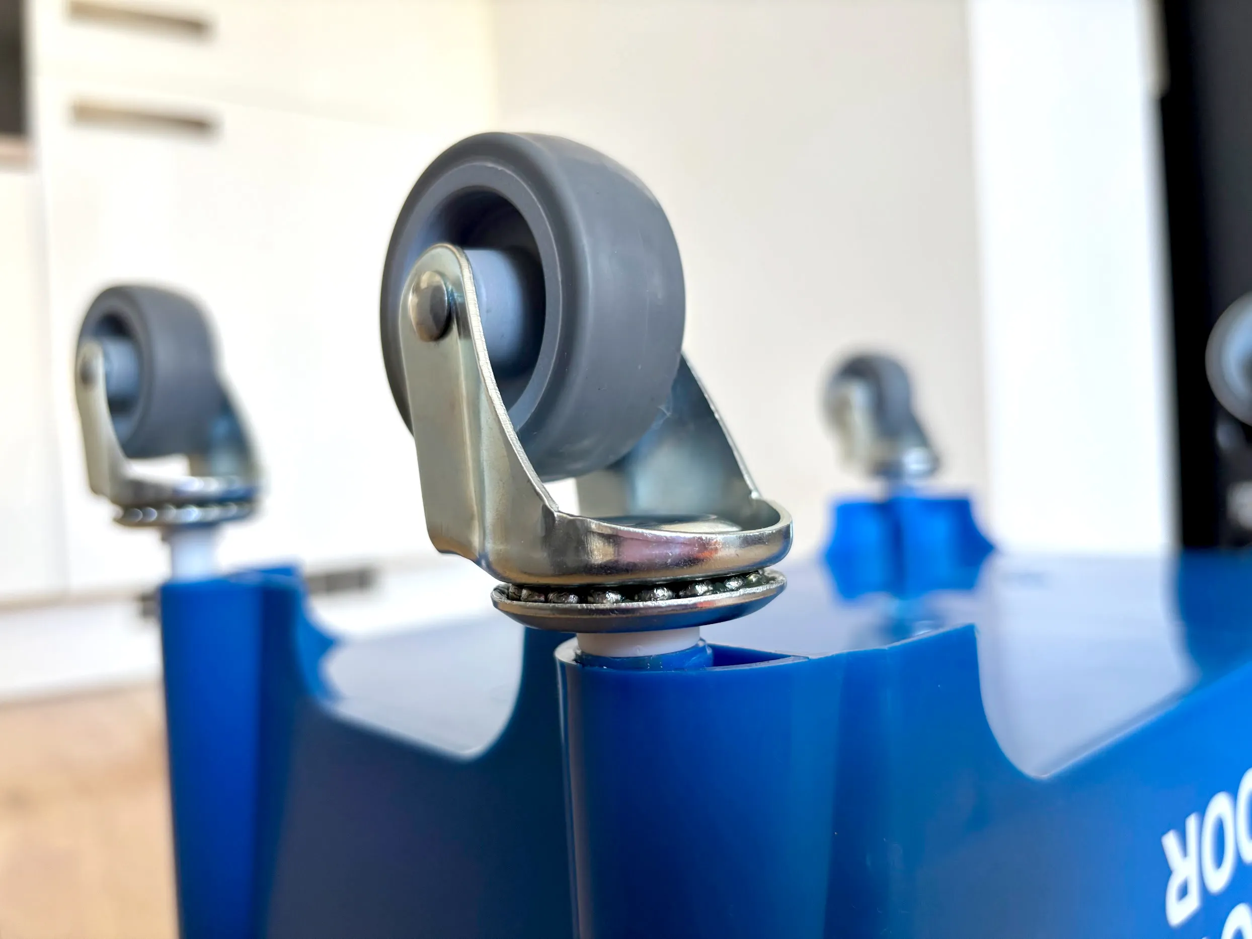 Jediná náročnější fáze nastala, když jsme se snažili zasunout kolečka do spodních otvorů ve vozíku. Na to je totiž třeba použít trochu více síly. Na druhou stranu pak ale velmi dobře drží. Pro zasunutí koleček doporučujeme kbelík nejdřív postavit dnem vzhůru (bez ždímače).